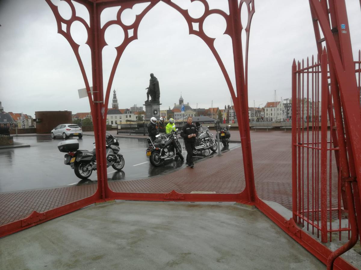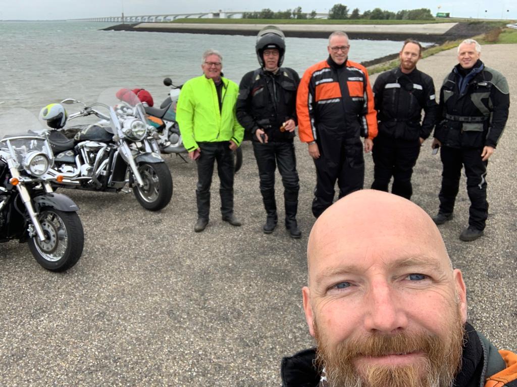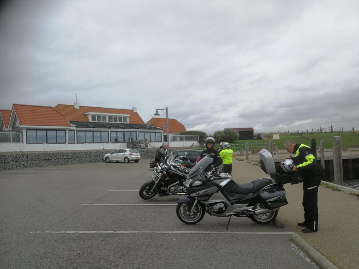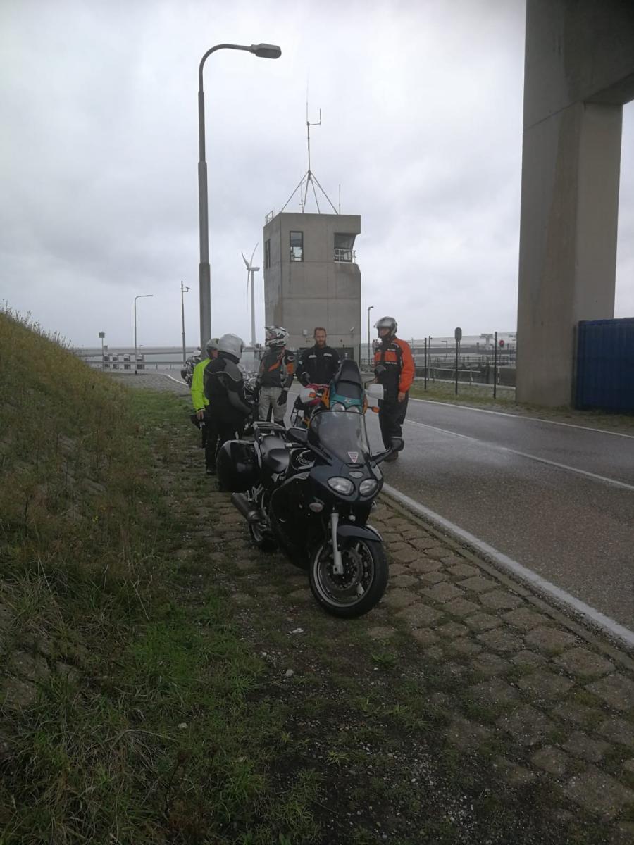 Een mooi rondje door Zierikzee langs de stadspoortjes en het haventje bracht ons weer terug op de doorgaande route naar Schudebeurs, Noordgouwe, Nieuwekerke richting Serooskerke Schouwen. Daarna even naar Renesse en weer terug langs een mooie route langs het water over de dijkweggetjes richting onze lunch locatie de “Heerenkeet” in Kerkwerve waar we eerst nog de nummerplaat van Teun weer op de motor moesten vast maken die hij onderweg verloren was! Gelukkig waren er tyraps aanwezig. Na de heerlijke lunch van oesters, vis, en varkenshaas was het weer tijd om verder te gaan richting Westenschouwen richting Neeltje Jans, waar we even een korte stop hadden.
