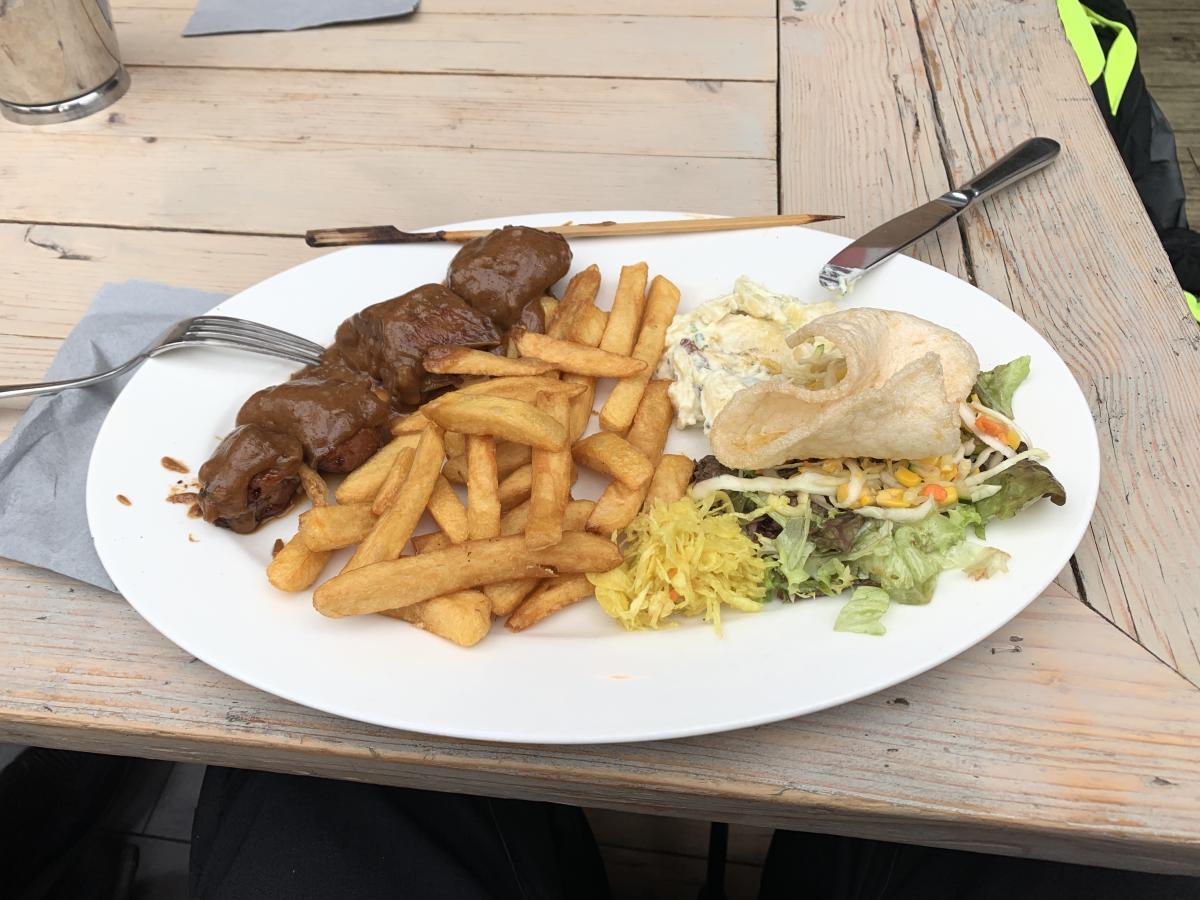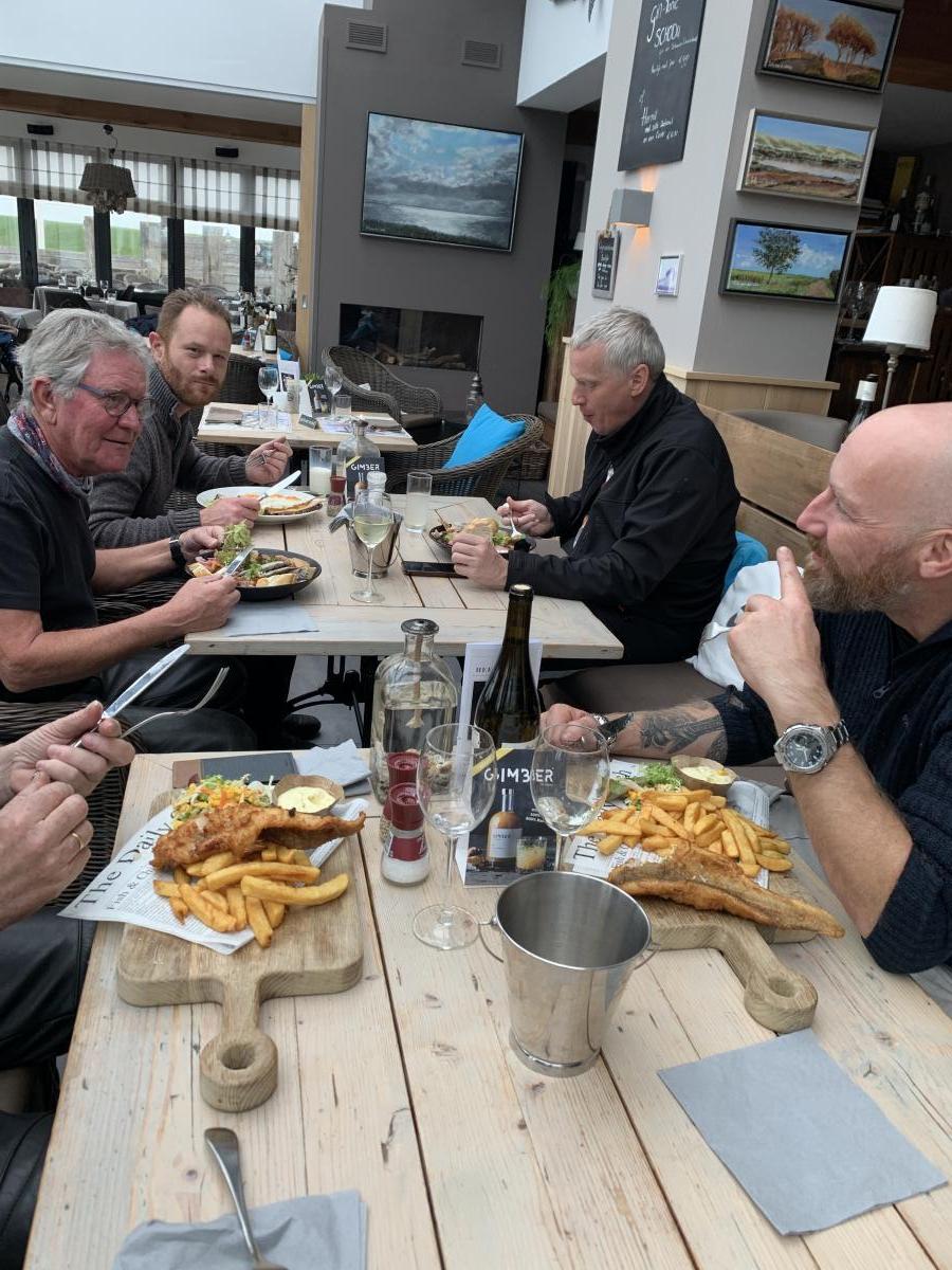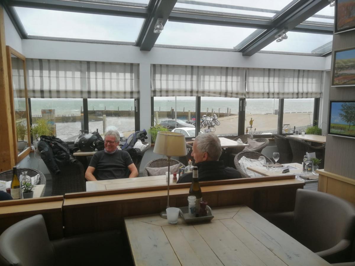 Een mooi rondje door Zierikzee langs de stadspoortjes en het haventje bracht ons weer terug op de doorgaande route naar Schudebeurs, Noordgouwe, Nieuwekerke richting Serooskerke Schouwen. Daarna even naar Renesse en weer terug langs een mooie route langs het water over de dijkweggetjes richting onze lunch locatie de “Heerenkeet” in Kerkwerve waar we eerst nog de nummerplaat van Teun weer op de motor moesten vast maken die hij onderweg verloren was! Gelukkig waren er tyraps aanwezig. Na de heerlijke lunch van oesters, vis, en varkenshaas was het weer tijd om verder te gaan richting Westenschouwen richting Neeltje Jans, waar we even een korte stop hadden.